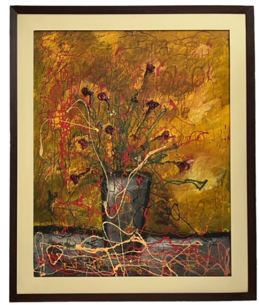 • ANDREA BRANDANI - Imponente obra em óleo sobre tela representando natureza morta "vaso de flores", assinada e datada no verso, protegida por moldura de madeira e paspatur. Acompanha certificado cedido pelo artista. Medida da obra 1m x 80cm. Medida total 1,18cm x 98cm.