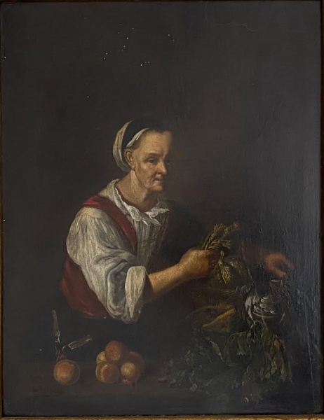 • VICENZO IROLLI (Italia 1860 / Italia 1949) - Óleo sobre madeira representando "senhora com frutas". Assinada no canto inferior esquerdo e localizada Napolis. Possui selo brasonado com cera de abelha no verso, proteção de moldura patinada e paspatur. Medida da obra 25cm x 31,5cm. Medida total 47cm x 54cm.