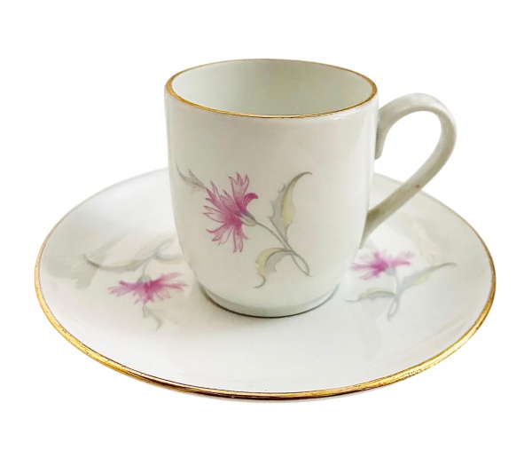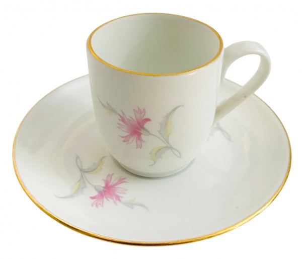 • RICHARD GUINORI - Xicara para café e ou coleção em requintada pasta de porcelana italiana adornada com ramalhete de flores em policromia e contorno em vibrante ouro. Acompanha o seu respectivo pires. Possui registro.