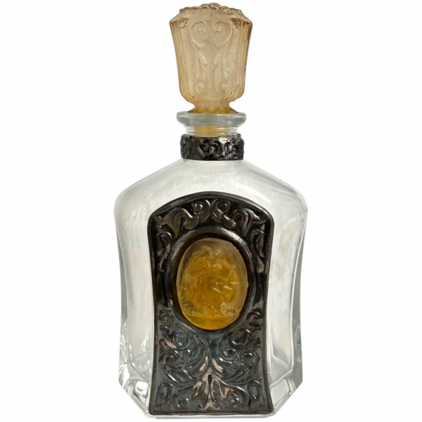 • ITALIA - garrafa para uisque em cristal italiano ACQUACHIARA, detalhes em metal espessurado a prata e resina italiana. Periodo 1900. Acompanha tampa. Mede 27 x 15cm.