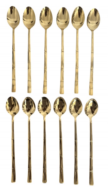 • Jogo de 12 elegantes colheres confeccionadas em metal com acabamento em dourado brilhante. Cada peça apresenta cabo com delicada textura que remete ao bambu, conferindo um charme natural e sofisticado à mesa posta. O design contemporâneo aliado ao tom dourado agrega requinte e versatilidade, ideal para compor serviços de chá, café ou sobremesas com um toque de luxo.Mede 19cm.