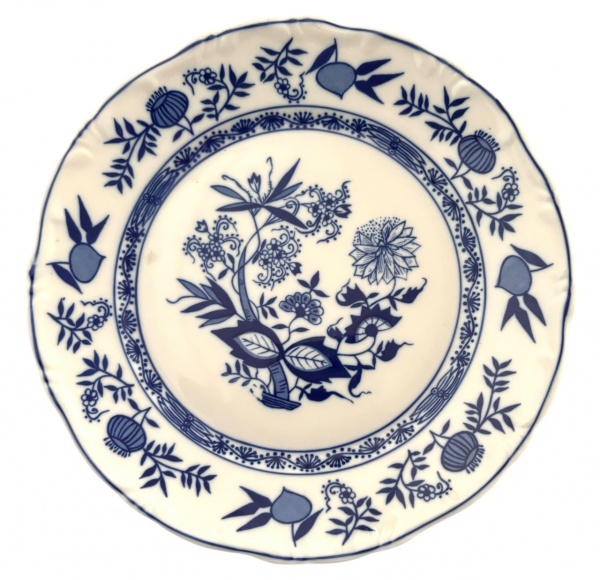 • STEATITA - Prato raso adornado com "cebolinha" na borda e ramalhete de flores ao centro. Possui registro STEATITA. Mede 25cm diâmetro.