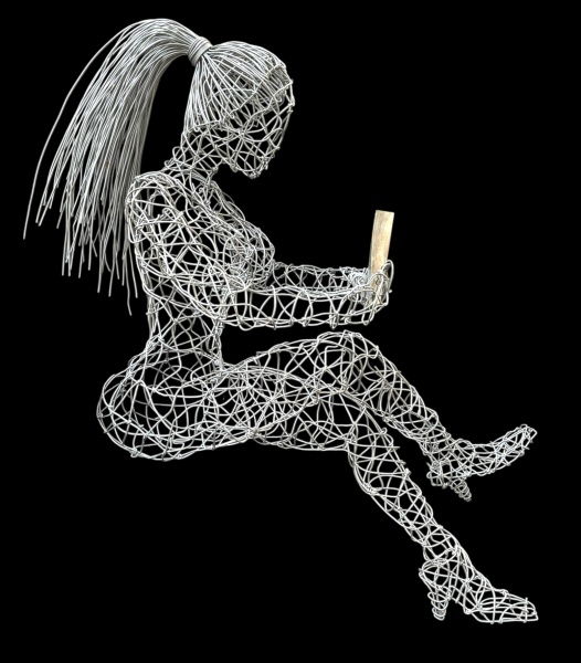 • HUMBERTO DE CASTRO  A escultura "a Leitora" revela toda a poesia que permeia a série Fragilidade Bruta do artista Humberto de Castro. Construída em arame de aço cuidadosamente entrelaçado, a peça forma uma figura feminina etérea, em momento de introspecção enquanto segura um livro. A leveza visual do vazio contrasta com a força do material industrial, traduzindo o diálogo entre delicadeza e vigor que caracteriza a produção do artista.Com linhas fluidas e desenho aéreo, esta obra transforma o aço em gesto e movimento, celebrando a leitura como ato de contemplação e liberdade. Uma obra de presença marcante, ideal para colecionadores que buscam a união de técnica contemporânea e sensibilidade poética.Série Fragilidade BrutaTítulo: A LeitoraTécnica: Escultura em arame de açoDimensões: 1,40 cm x 97 cm.