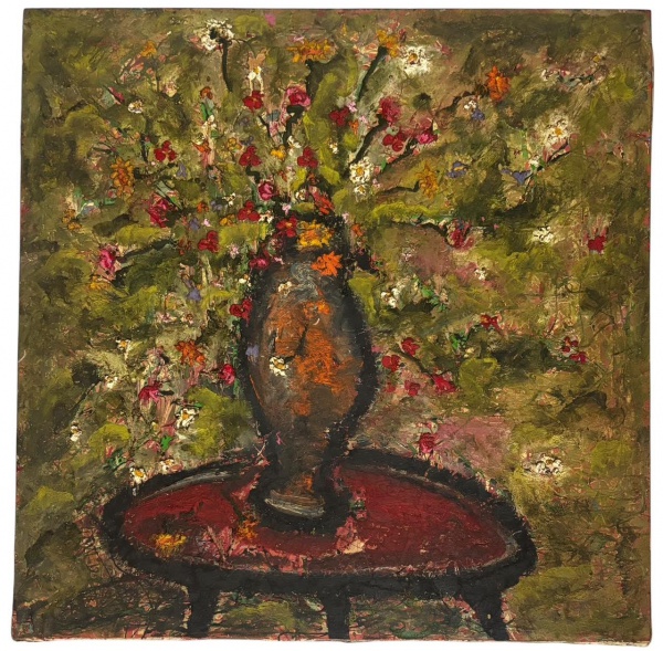 • ANDREA BRANDANNI - Obra em óleo sobre tela "vaso de flores sobre a mesa". Mede 1m x 1m.