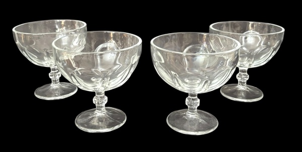• Jogo de quatro taças para sorvete em demi cristal translúcido. Mede 12cm altura.