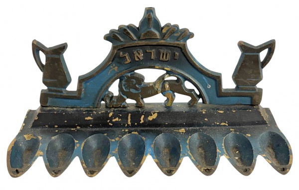 • Menorah judaico, metal patinado. Made in Israel. Mede 19 x 11cm.