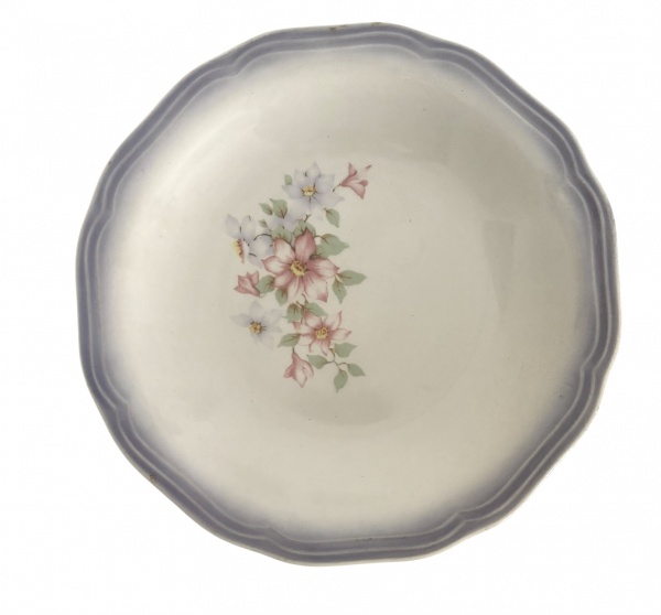 • Prato fundo Oxford Vitramik 5960, em cerâmica brasileira, com flores pintadas ao centro e borda ondulada em tom lilás suave. Peça de linha clássica utilitária, ideal para composição de mesa ou coleção de modelos vintage da marca. Mede 21 cm diâmetro.