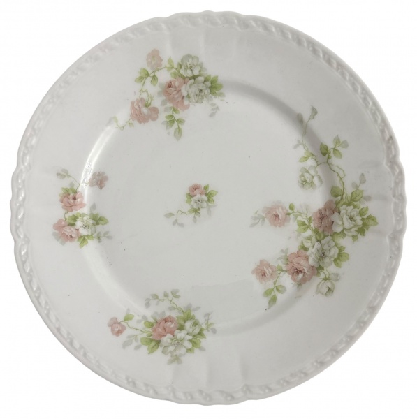 • LIMOGES FRANÇA - Prato raso em porcelana francesa Limoges, decoração floral policromada em tons rosados e verdes, borda levemente ondulada com relevo delicado. Marca Limoges France na base. Peça clássica para serviço de mesa ou composição de conjunto.Estado de conservação: bom, com discretos sinais do tempo. Meados séc. XIX. Mede 25 cm.