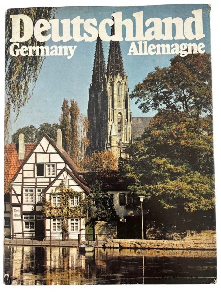 • ALEMANHA - Raro exemplar do livro fotográfico DEUSTSCHLAND editado pela Prisma Verlag GmbH (1981), com belas imagens de cidades, castelos e paisagens da Alemanha. Edição em capa dura com sobrecapa, trilingue (alemão, inglês e francês), impressa com alta qualidade gráfica, reunindo fotografias de arquitetura histórica, monumentos e cenários naturais. Paginas ilustradas a cores.Exemplar ilustrado, ideal para colecionadores, apreciadores de livros de arte e amantes da cultura alemã. Mede 29 x 22 cm.