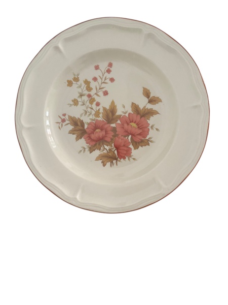 • Prato fundo Oxford Vitramik 5960, em cerâmica brasileira, com flores pintadas ao centro e borda ondulada em tom lilás suave. Peça de linha clássica utilitária, ideal para composição de mesa ou coleção de modelos vintage da marca. Mede 21 cm diâmetro.