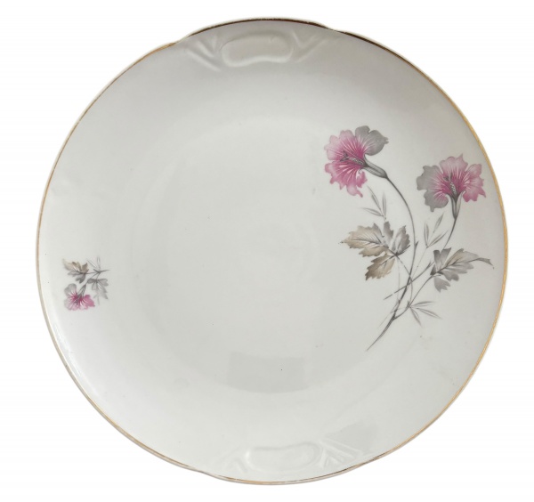 • REAL - Prato para bolo em porcelana esmaltada da manufatura Real, adornado com ramalhetes de flores em policromia e filete em vibrante ouro. Apresenta registro. Mede 28cm de diâmetro.