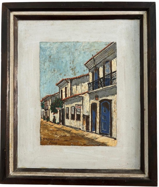 • ARY MARTINS - Obra em óleo sobre laca, à Paraty, proteção de moldura de madeira e paspateur. Possui ficha do artista no verso com data de premiações. Mede total 27cm x 32cm.