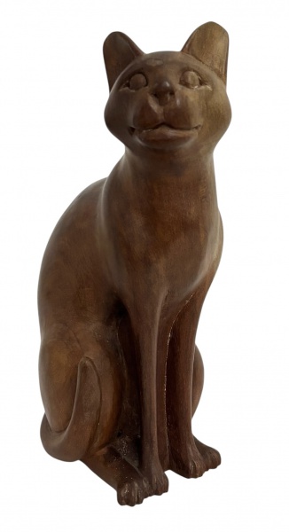 • Elegante escultura em madeira maciça, representando figura de gato em posição sentada, com traços suavemente estilizados que evidenciam a serenidade felina. O entalhe revela linhas fluidas, orelhas eretas e delicados detalhes faciais, transmitindo equilíbrio e harmonia.A peça apresenta acabamento em tom natural, com leve polimento que valoriza o veio da madeira e confere um aspecto quente e acolhedor. Ideal para colecionadores de arte decorativa ou amantes de representações animais, agrega charme a ambientes contemporâneos ou clássicos. Dimensões 30 x 16 cm.Uma obra singular que une a simplicidade da forma à nobreza do material, perfeita para compor coleções de arte popular ou escultura decorativa.