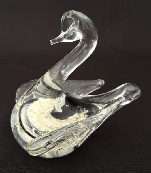• ITALIA - Escultura de mesa, "pato" em cristal de Murano translúcido e centro em P&B. Mede 15cm.