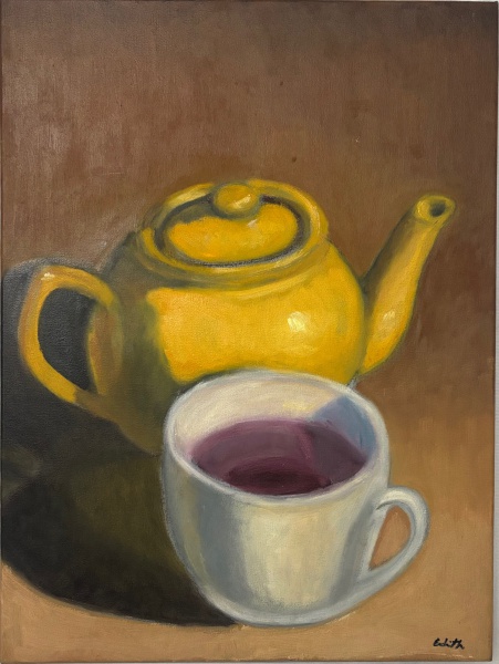 • EDITH - Óleo sobre tela, natureza morta " xícara e bule", assinada no canto inferior direito. Medida total 30cm x 40cm.