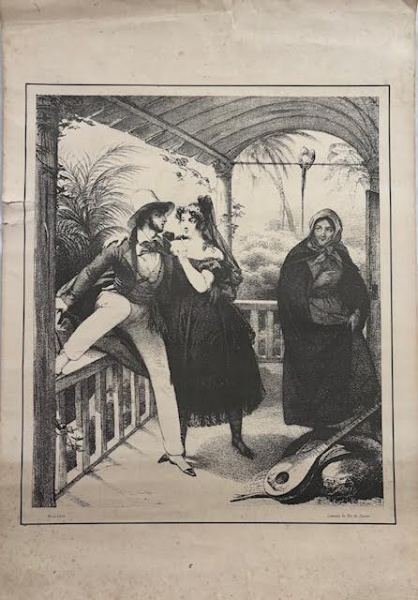 • Antiga litogravura "RUGENDAS" intitulada "COSTUMES DO RIO DE JANEIRO". Amarelamento do tempo. Medida total 45 x 64cm.