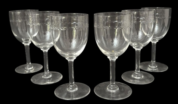 • Conjunto com 6 taças em cristal transparente, bojo arredondado e lapidação discreta, adequadas para vinho ou água. Peças elegantes para mesa posta. mede 16,5 cm.