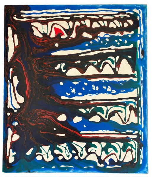 • Obra abstrata em técnica fluida, acrílica sobre tela, com movimento intenso de azuis, pretos e vermelhos criando padrões orgânicos sobre fundo claro. Pintura sobre tela, esticada em chassi de madeira, verso limpo e sem assinatura visível. Peça decorativa expressiva, ideal para composições contemporâneas. Mede 70 x 60 cm.