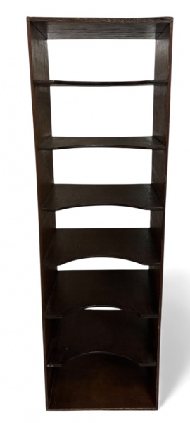 • Antiga prateleira vintage em madeira, de linhas simples e funcionais, com vários nichos e recortes frontais curvos ideais para coletar discos de vinil. Uma peça prática e charmosa, ideal para organização e decoração com estilo retrô. Usado como porta discos de vinil. Inicio século XX. Mede 107 cm x 34 cm.