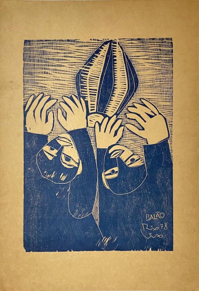 • CIRO FERNANDES (Rio de Janeiro 1942 ) - Antiga xilogravura intitulada "BALÃO", localizada Rio, datada 1978. Medida da obra 34,5cm x 24,5cm. Medida total 32,5cm x 47cm.
