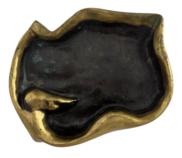 • SUZANA LEVY - Obra em bronze de Suzana Levy, com forma orgânica de forte presença escultórica. A peça apresenta superfície interna escurecida com pátina natural e bordas em bronze polido, criando contraste elegante típico da artista. Trabalho de estética moderna, modelado à mão, revelando movimento e textura únicos. Mede 18 x 15 cm.