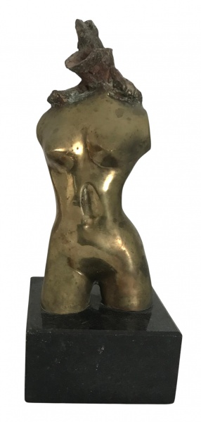 • SUZANA LEVY (Rio de Janeiro, 1937 / Idem, 2023) - Escultura de mesa em bronze patinado representando torso feminino estilizado, com a superfície levemente texturizada e nuances de pátina verde-acinzentada. A peça revela a delicadeza das formas femininas, contrastando com a parte superior intencionalmente inacabada, recurso típico da artista Suzana Levy, que valoriza  o movimento e a força do fragmento. Obra apoiada em base de granito. Mede 30cm altura. Obra de grande expressividade e equilíbrio, ideal para colecionadores de arte contemporânea brasileira e apreciadores da escultura em bronze.